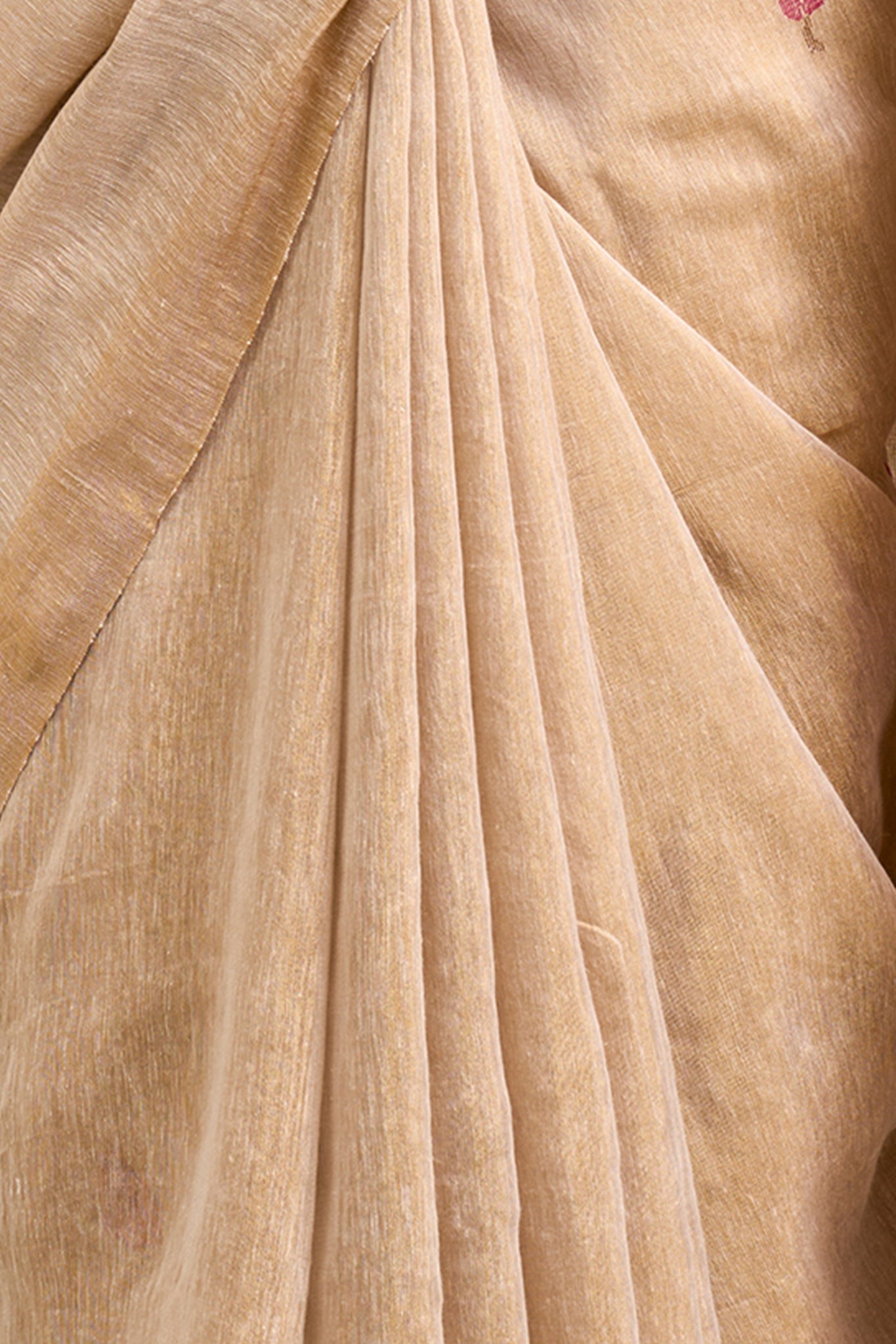 Designed in soft, breathable Chanderi silk, this Light Mustard Yellow saree showcases delicate lotus embroidery prints across the body and pallu, accentuated by a refined golden border. Lightweight and easy to drape, the pallu is finished with charming tassels, making it a timeless addition to festive gatherings, traditional functions, and sophisticated wardrobes.